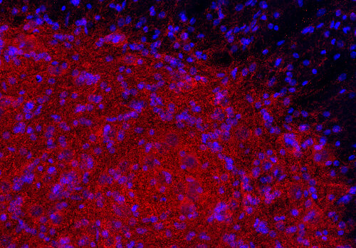 Immunocytochemistry (ICC) on 4% PFA fixed cells. Immunoreactivity is usually revealed by fluorescence. Some antibodies require special fixation methods. For details, please refer to the “Remarks” section.