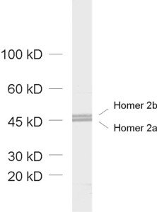 | Specificity | AA 121-176, unique for homer 2, were used for affinity purification. |