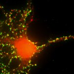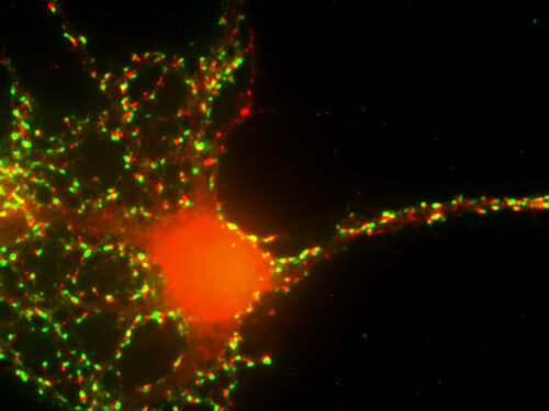 Synaptopodin is the founding member of a class of proline-rich actin-associated proteins and has been originally identified in podocytes of renal glomeruli (1, 2). In brain it localizes to the post-synaptic density (PSD) and the spine aparatus (1). In humans, three isoforms of synaptopodin with a distinct expression profile have been identified, neuronal Synpo-short, renal Synpo-long and Synpo-T. All three isoforms interact with alpha-actinin and induce alpha-actinin-induced actin filaments (3).