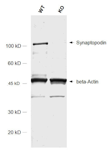 | Specificity | This antibody detects the renal Synpo-long and the neuronal Synpo-short isofoms but is negativ for the T-variant. K.O. validated |