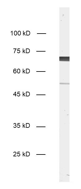 This antibody is a chimeric antibody based on the monoclonal mouse antibody clone 69H10. The constant regions of the heavy and light chains have been replaced by rabbit specific sequences. Therefore, the antibody can be used with standard anti-rabbit secondary reagents. The antibody has been expressed in mammalian cells. |
