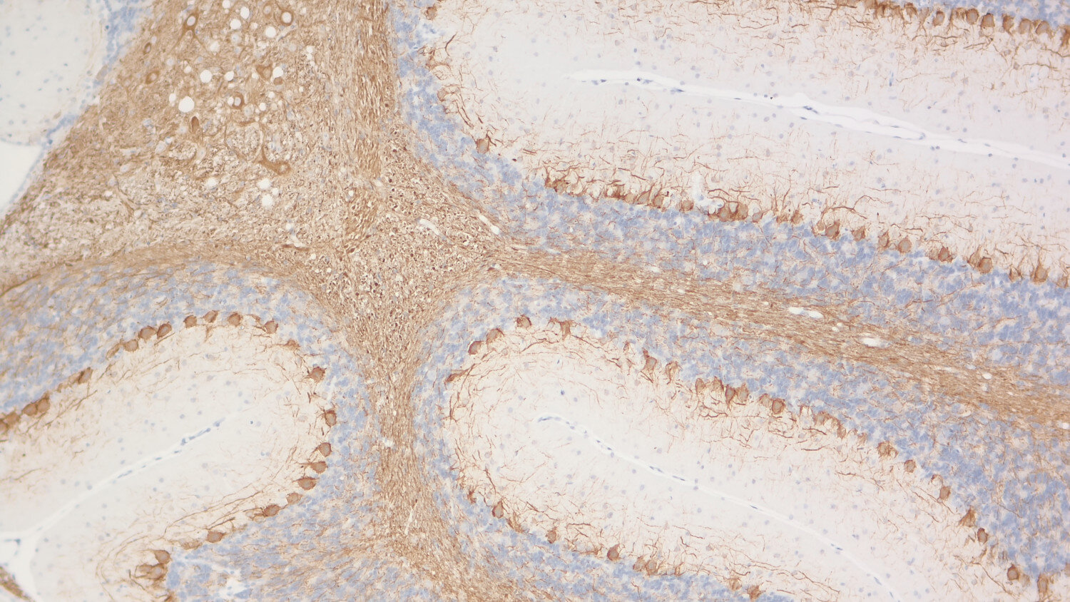 Beyond their structural function, neurofilaments are also valuable biomarkers in both research and clinical settings. They are widely used in immunohistochemistry to stain and visualize axons, particularly in peripheral nerves and the CNS. Increased levels of neurofilament proteins in cerebrospinal fluid (CSF) or blood are strongly associated with neurodegenerative diseases, such as amyotrophic lateral sclerosis (ALS), multiple sclerosis (MS), and Alzheimer’s disease (3). In peripheral nerve studies, neurofilament staining is often combined with other markers, such as S100, to provide a more comprehensive assessment of nerve structure and pathology (4).