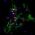 Frequently, neural stem cells also express GFAP. In addition many types of brain tumors, probably derived from astrocytic cells, heavily express GFAP. This protein is also found in the lens epithelium, Kupffer cells of the liver, in some cells in salivary tumors and others.