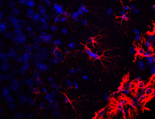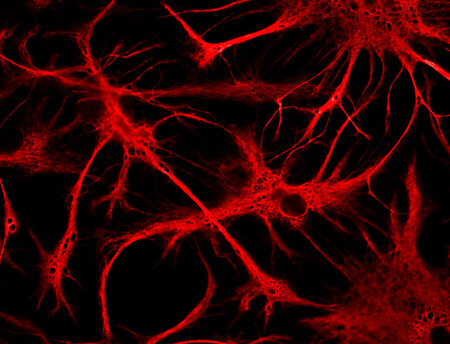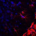 Frequently, neural stem cells also express GFAP. In addition many types of brain tumors, probably derived from astrocytic cells, heavily express GFAP. This protein is also found in the lens epithelium, Kupffer cells of the liver, in some cells in salivary tumors and others.