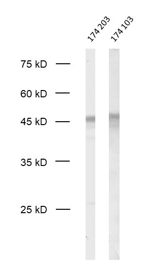Cat. No. 174 203 50 µg specific antibody, lyophilized. Affinity purified with the immunogen. Albumin was added for stabilization. For reconstitution add 50 µl H2O to get a 1mg/ml solution in PBS. Then aliquot and store at -20°C to -80°C until use.