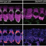 Otoferlin is expressed in hair cells of the inner ear and in some brain regions. Hair cell ribbon synapses lack the candidate neuronal calcium sensors synaptotagmin 1, synaptotagmin 2 and synaptotagmin 3 and other proteins typical for conventional synapses like synaptophysin.