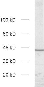 50 µg specific antibody, lyophilized. Affinity purified with the immunogen. Albumin was added for stabilization. For reconstitution add 50 µl H2O to get a 1mg/ml solution in PBS. Then aliquot and store at -20°C to -80°C until use. Antibodies should be stored at +4°C when still lyophilized. Do not freeze! |