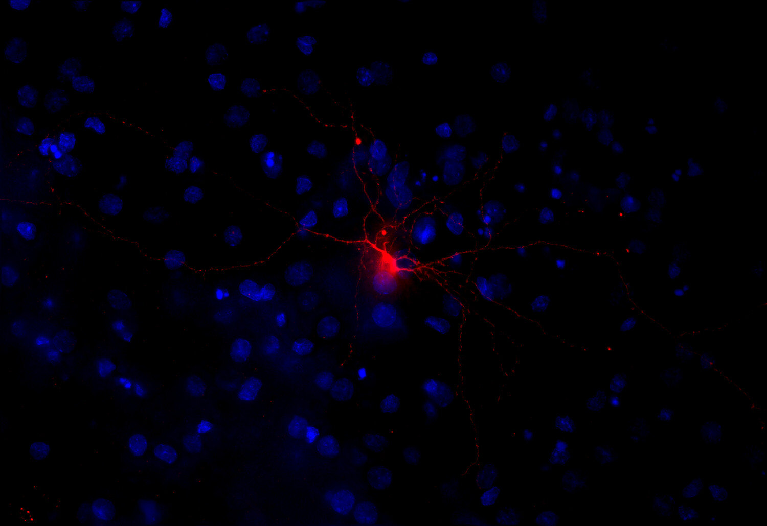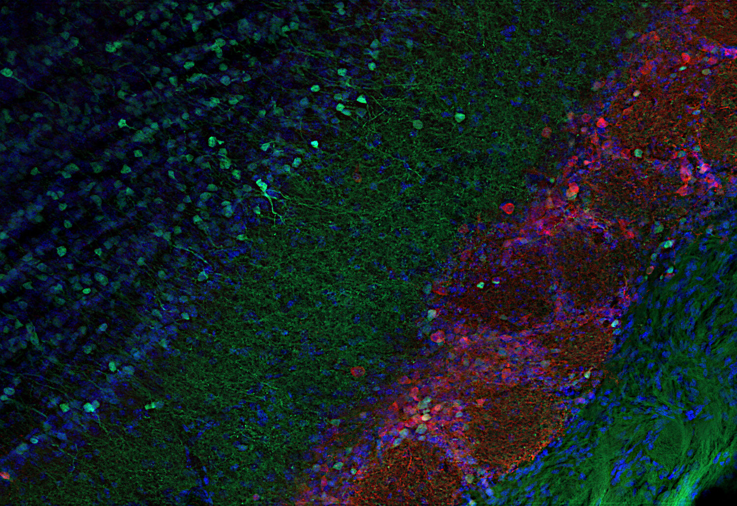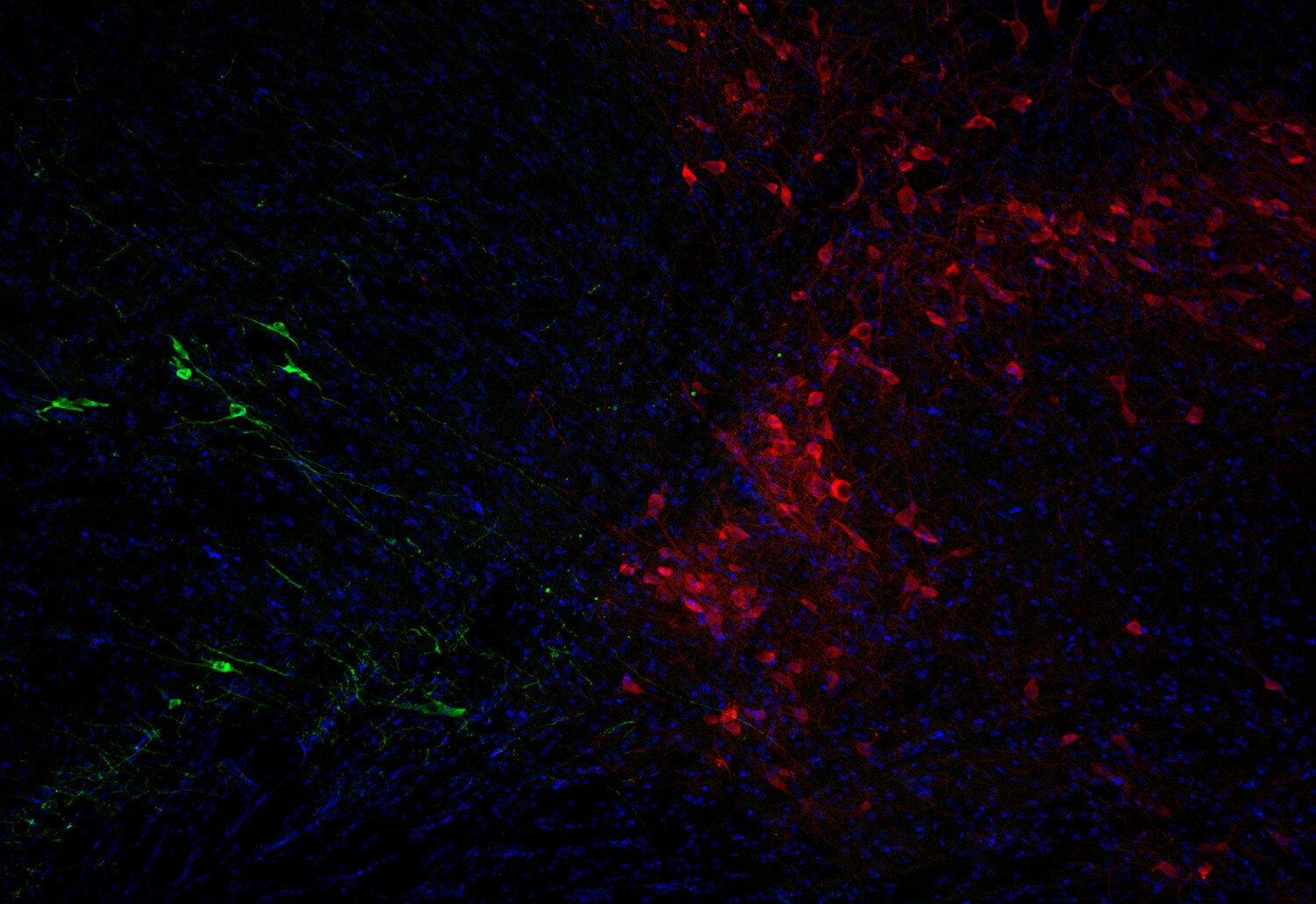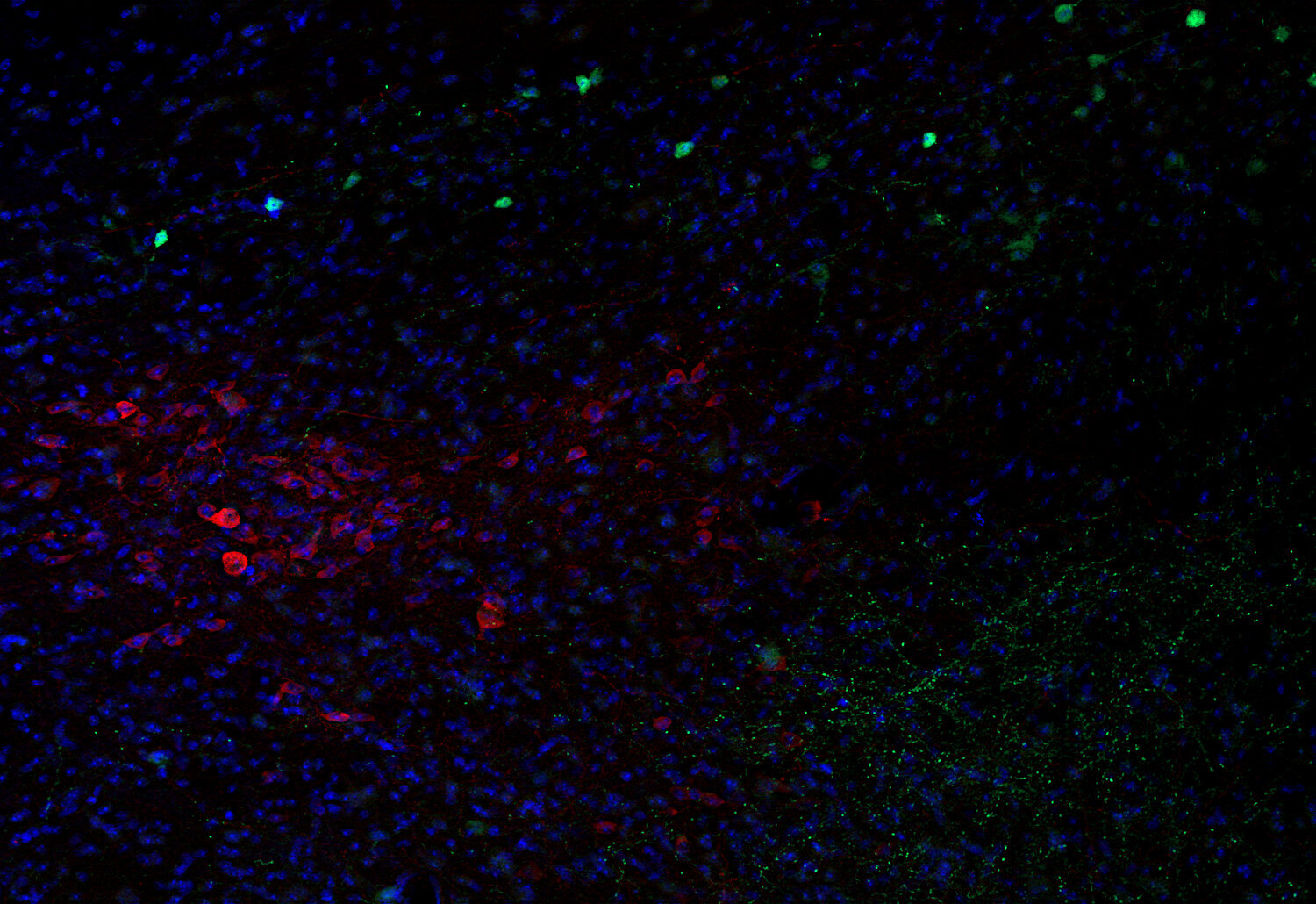 Tyrosine hydroxylase is one of the key enzymes in the synthesis pathway of catecholamines like adrenalin, noradrenalin and dopamin and is frequently used as a marker for dopaminergic neurons. This neuronal subpopulation is especially affected in Parkinson's disease.