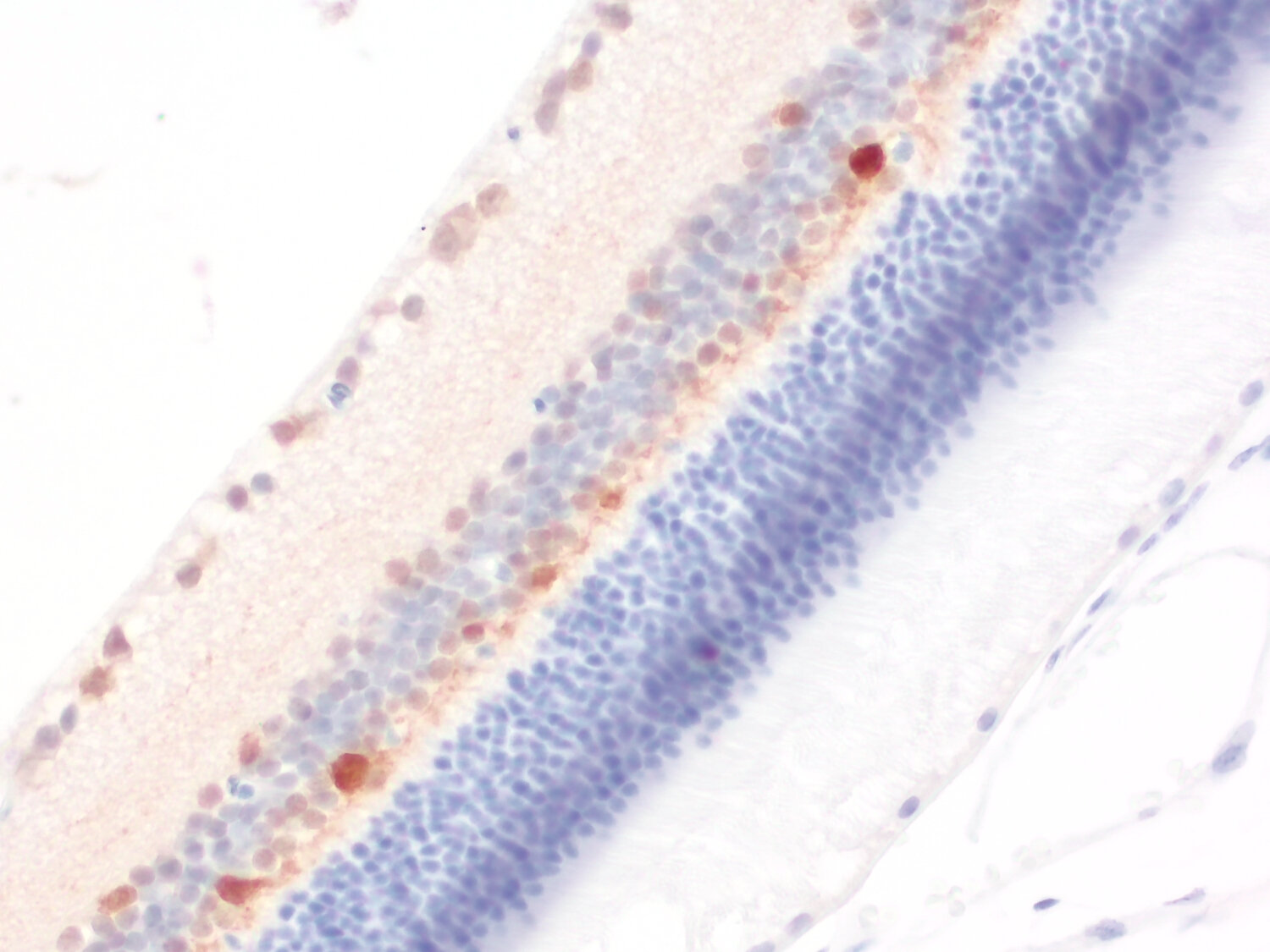 This antibody is a chimeric antibody based on the monoclonal mouse antibody 351C10. The constant regions of the heavy and light chains have been replaced with guinea pig specific sequences. Therefore, the antibody can be used with standard anti-guinea pig secondary reagents. The antibody has been expressed in mammalian cells. |