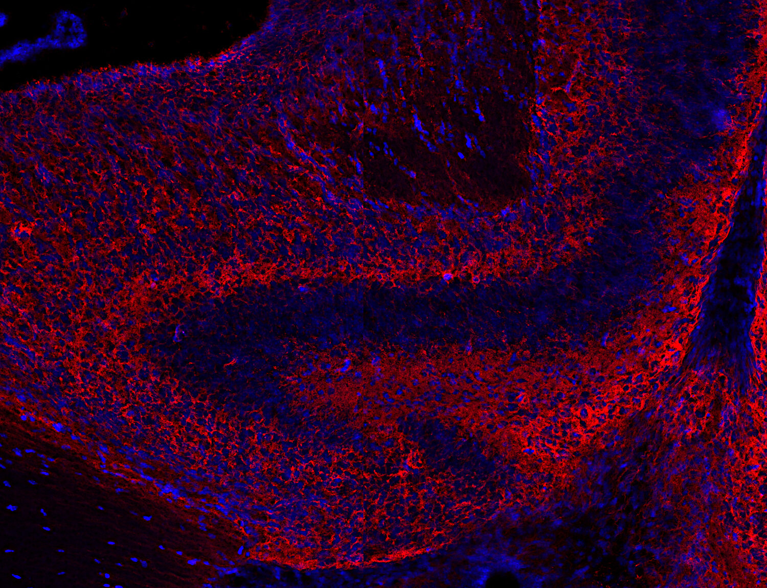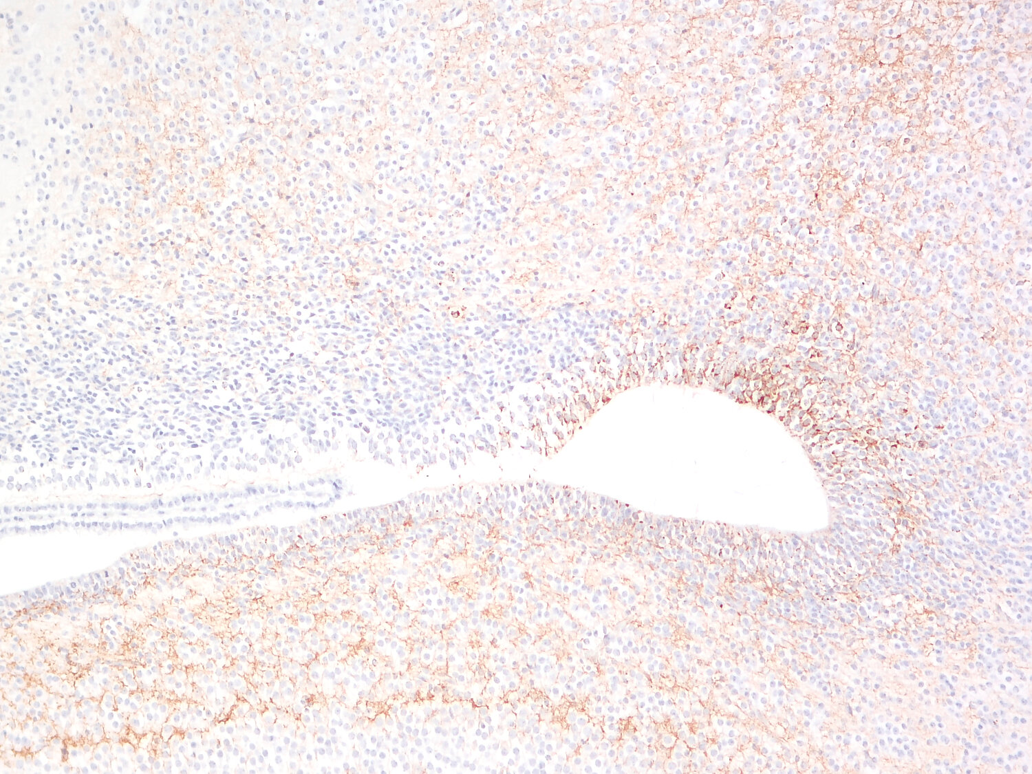 Tenascin-C variants detected by this antibody are downregulated during development and hardly detectable in adult animals |