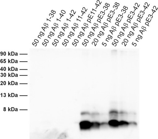 | Immunogen | Synthetic peptide corresponding to AA 3 to 7 from human Abeta-pE3 (UniProt Id: P05067) |