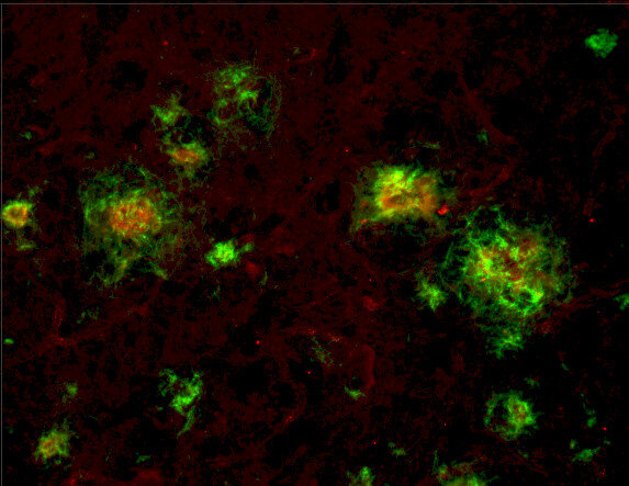 Amyloid deposits, also called plaques, of Alzheimer's patients consist of several protein components like the amyloid beta-peptides (Abeta, Aβ) 1-40/42/43 and additional C- and N-terminally modified fragments of Abeta as for instance Abeta pE3 and Abeta pE11.