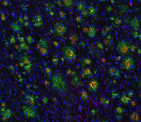100 µg purified IgG, lyophilized. Albumin and azide were added for stabilization. For reconstitution add 100 µl H2O to get a 1mg/ml solution in PBS. Then aliquot and store at -20°C to -80°C until use. Antibodies should be stored at +4°C when still lyophilized. Do not freeze! |
