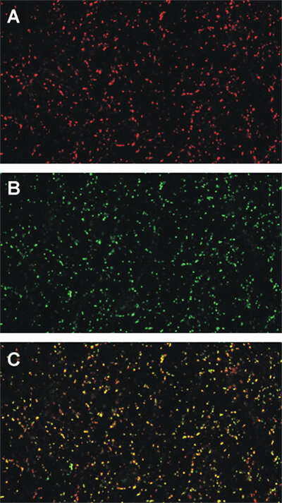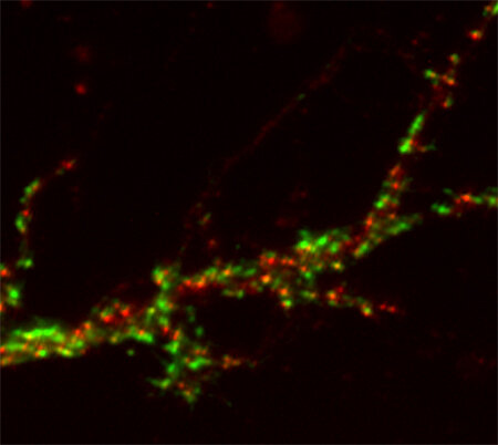 Electron microscopy (EM) is a microscopy technique that detects the scatter of electrons through thin tissue sections. In Immuno-EM the antigen is usually revealed by colloidal gold conjugated secondary antibodies linking electron dense structures to antigen-bound primary antibodies.