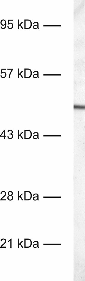 This antibody is a chimeric antibody based on the monoclonal mouse antibody clone 53D3. The constant regions of the heavy and light chains have been replaced by rabbit specific sequences. Therefore, the antibody can be used with standard anti-rabbit secondary reagents. The antibody has been expressed in mammalian cells. |