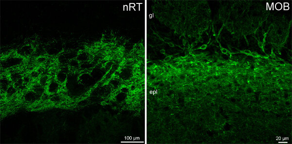IHC: This antibody has been successfully applied for this method by our customers using antigen retrieval with pepsin according to Lorincz and Nusser 2010 (see gallery). It has not been validated using our standard protocol. |