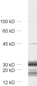 200 µl antiserum, lyophilized. For reconstitution add 200 µl H2O, then aliquot and store at -20°C until use. Antibodies should be stored at +4°C when still lyophilized. Do not freeze! |