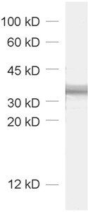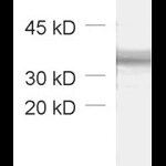 50 µg specific antibody, lyophilized. Affinity purified with the immunogen. Albumin was added for stabilization. For reconstitution add 50 µl H2O to get a 1mg/ml solution in PBS. Then aliquot and store at -20°C to -80°C until use. Antibodies should be stored at +4°C when still lyophilized. Do not freeze! |