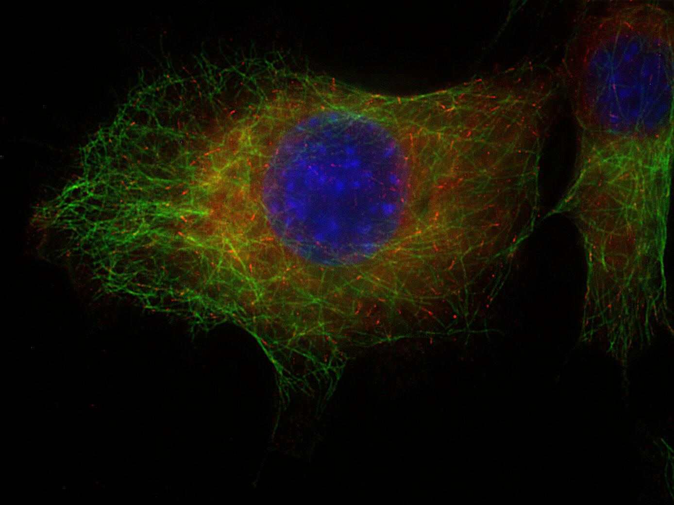 Immunocytochemistry (ICC) on 4% PFA fixed cells. Immunoreactivity is usually revealed by fluorescence. Some antibodies require special fixation methods. For details, please refer to the “Remarks” section.