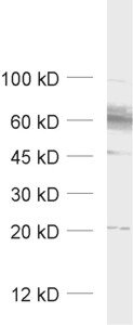50 µg specific antibody, lyophilized. Affinity purified with the immunogen. Albumin was added for stabilization. For reconstitution add 50 µl H2O to get a 1mg/ml solution in PBS. Then aliquot and store at -20°C to -80°C until use. Antibodies should be stored at +4°C when still lyophilized. Do not freeze! |