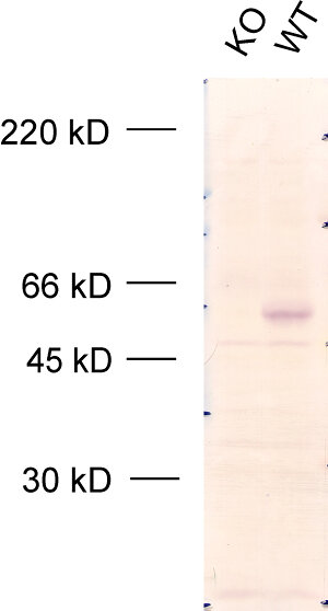 Five EAATs with differential expression patterns have been described so far: EAAT1, also referred to as GLAST and SLC1A3, has neuroprotective potential following ischemia and occurs in reactive astrocytes and activated microglia. EAAT2 (GLT-1, SLC1A2) is the most abundant isoform and is primarily expressed in astrocytes. Both variants show high levels in brain and retina. EAAT3 / SLC1A1, EAAT4 / SLC1A6 and EAAT5 / SLC1A7 are expressed in neurons (2). EAAT4 shows weak expression in the forebrain and high levels in the cerebellum, where it mainly locates to Purkinje cells (3). EAAT5 primarily occurs in the retina, where it locates very close to glutamate release sites. In K.O. mice flicker resolution is considerably compromised (4). Recent findings suggest that EAAT5 is an abundant isoform, expressed also in non-neuronal peripheral tissues (5).