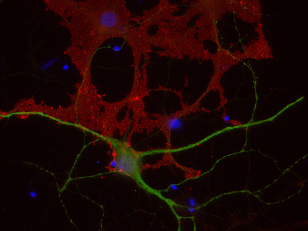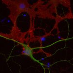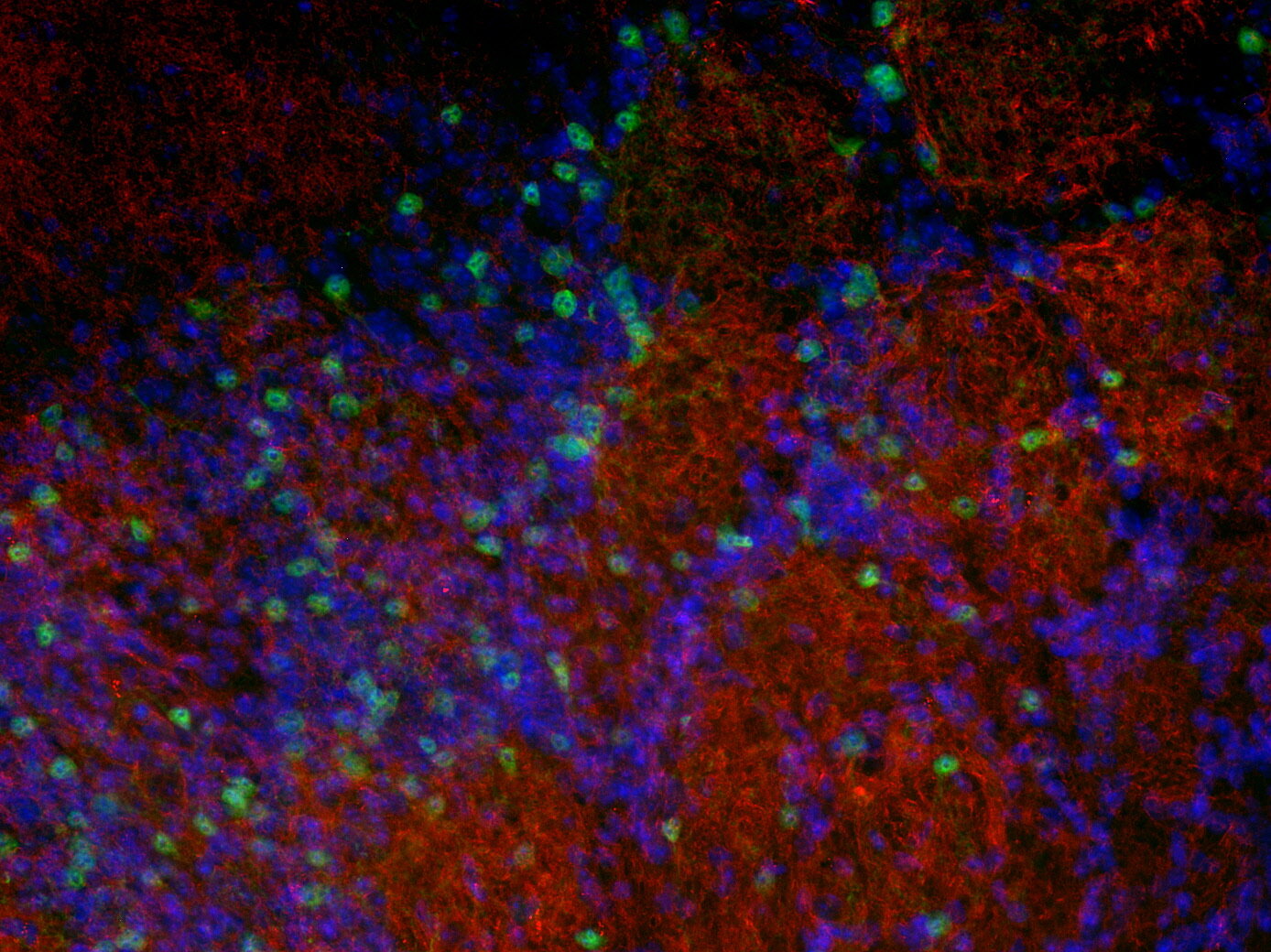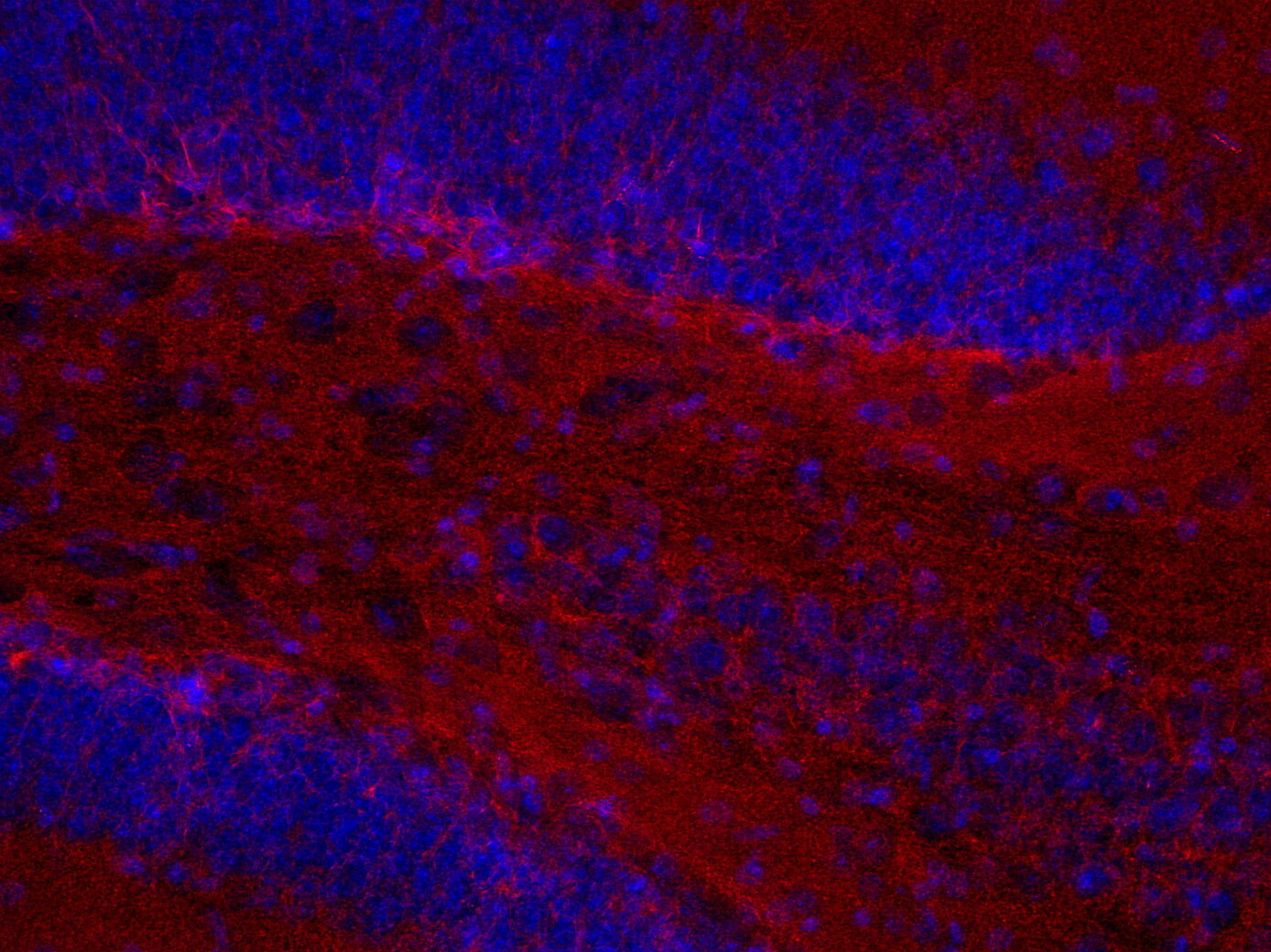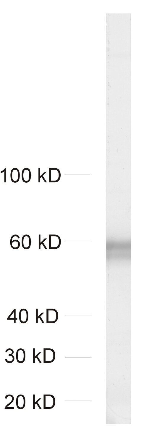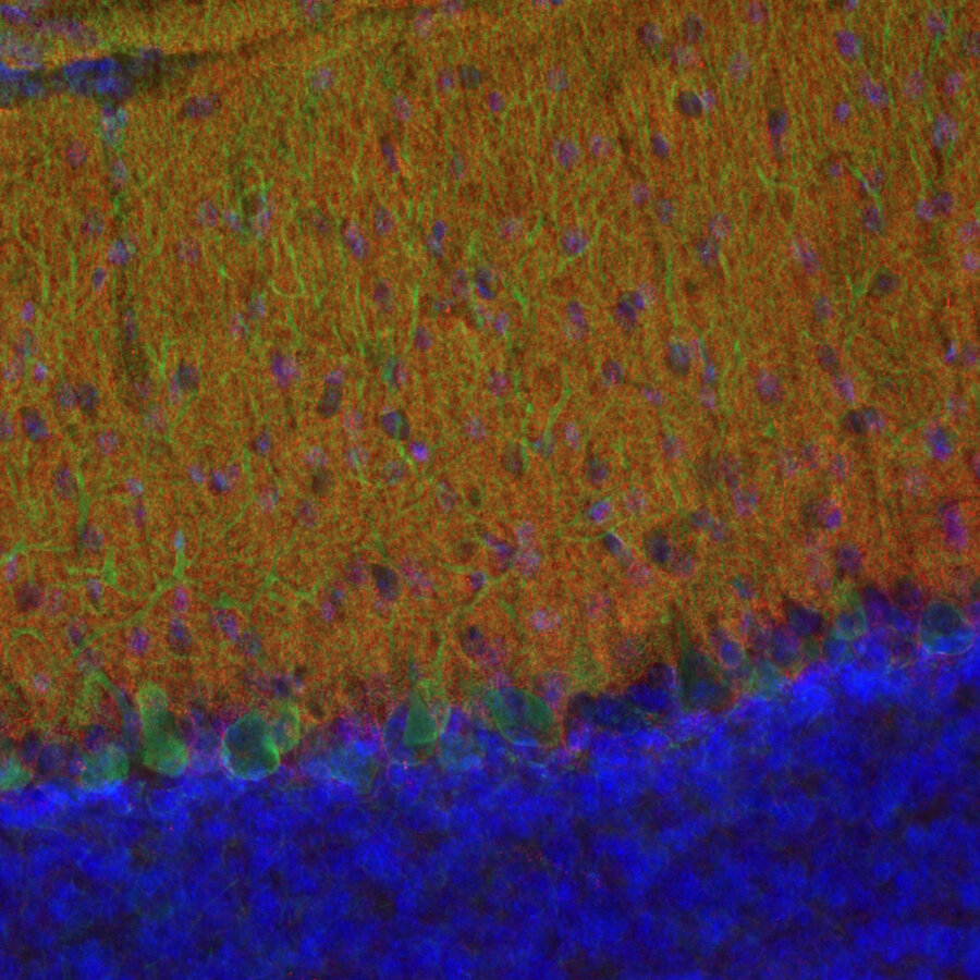 Five EAATs with differential expression patterns have been described so far: EAAT1, also referred to as GLAST and SLC1A3, has neuroprotective potential following ischemia and occurs in reactive astrocytes and activated microglia. EAAT2 (GLT-1, SLC1A2) is the most abundant isoform and is primarily expressed in astrocytes. Both variants show high levels in brain and retina. EAAT3 / SLC1A1, EAAT4 / SLC1A6 and EAAT5 / SLC1A7 are expressed in neurons (2). EAAT4 shows weak expression in the forebrain and high levels in the cerebellum, where it mainly locates to Purkinje cells (3). EAAT5 primarily occurs in the retina, where it locates very close to glutamate release sites. In K.O. mice flicker resolution is considerably compromised (4). Recent findings suggest that EAAT5 is an abundant isoform, expressed also in non-neuronal peripheral tissues (5).