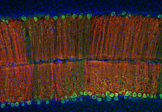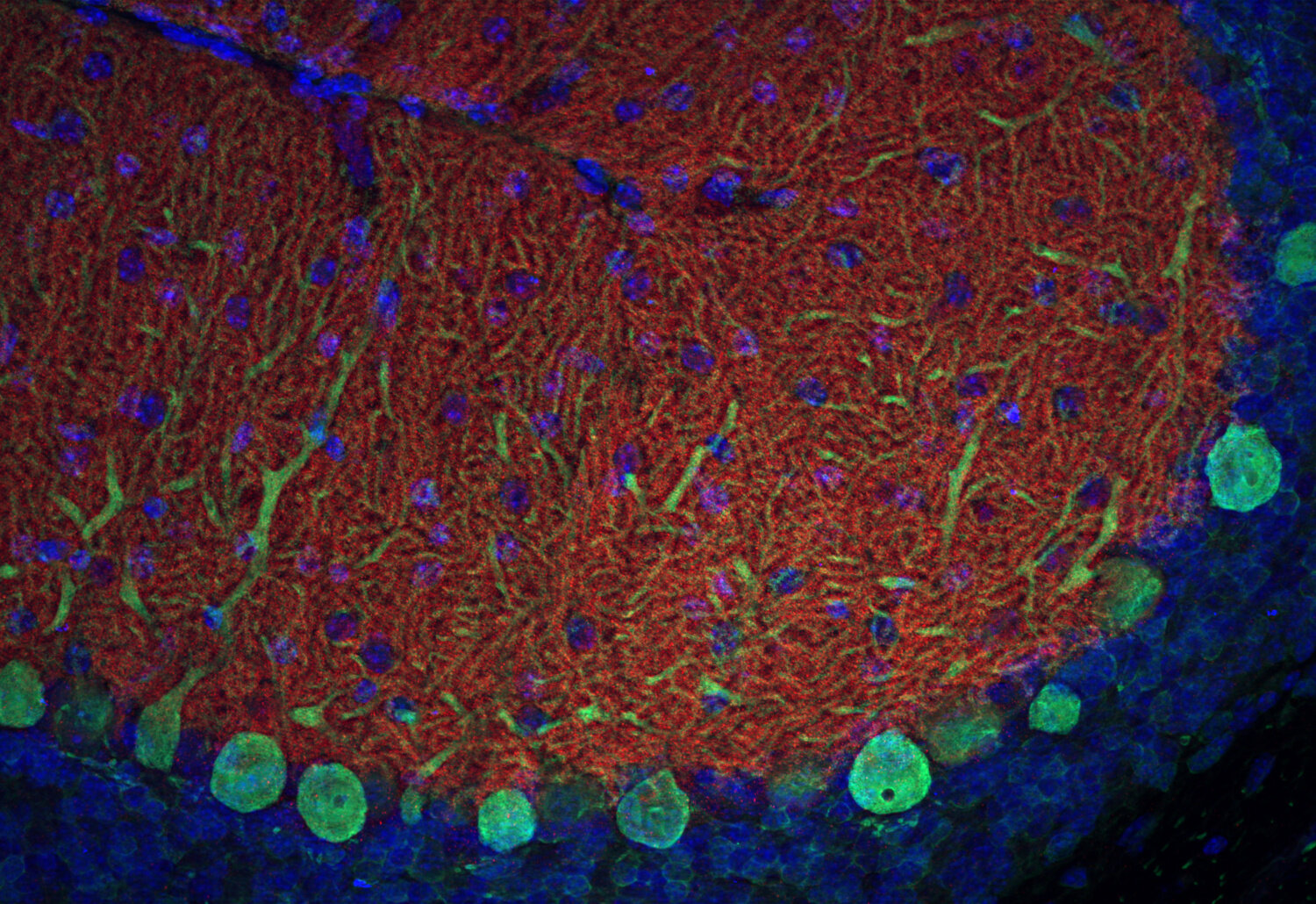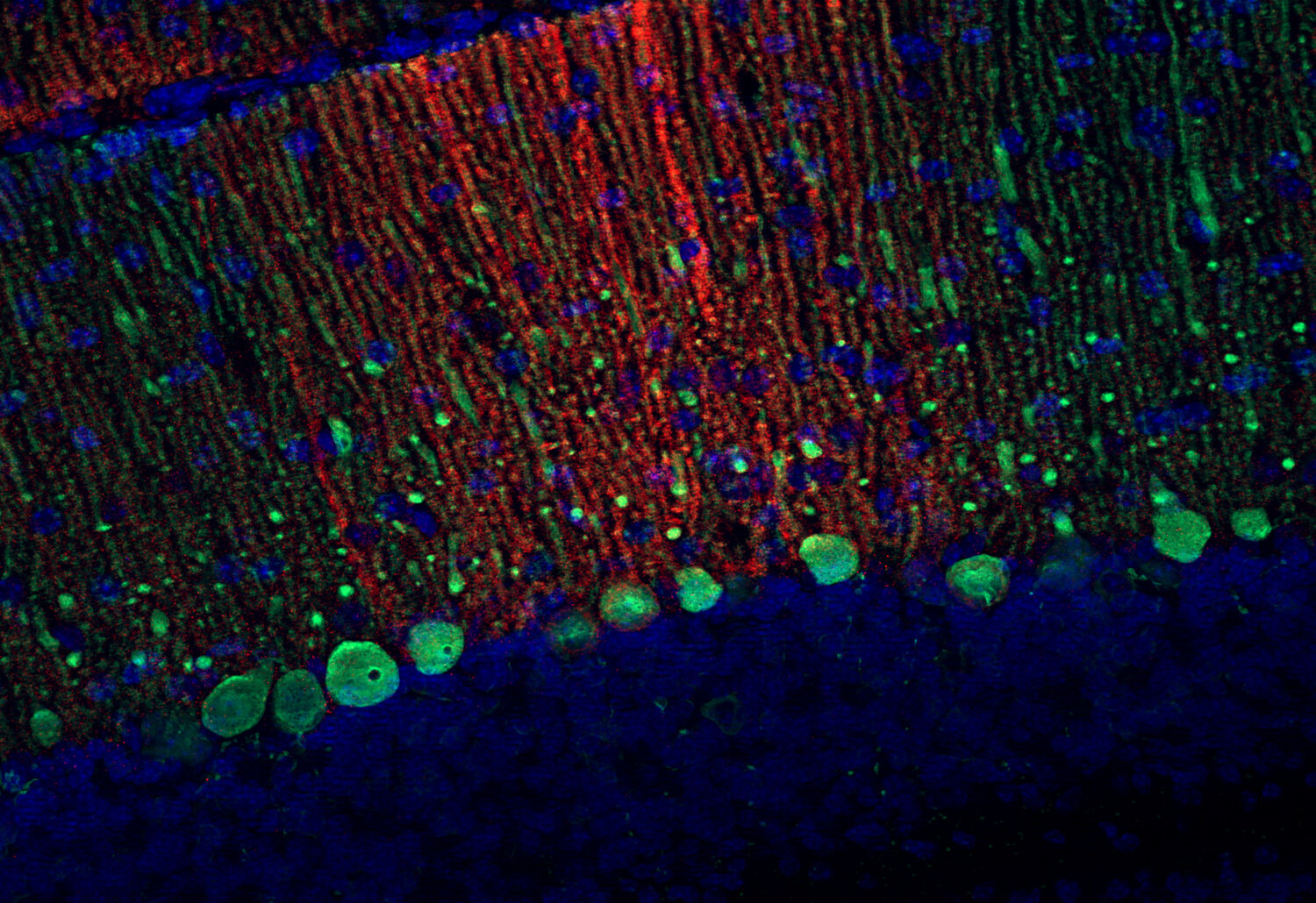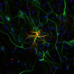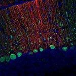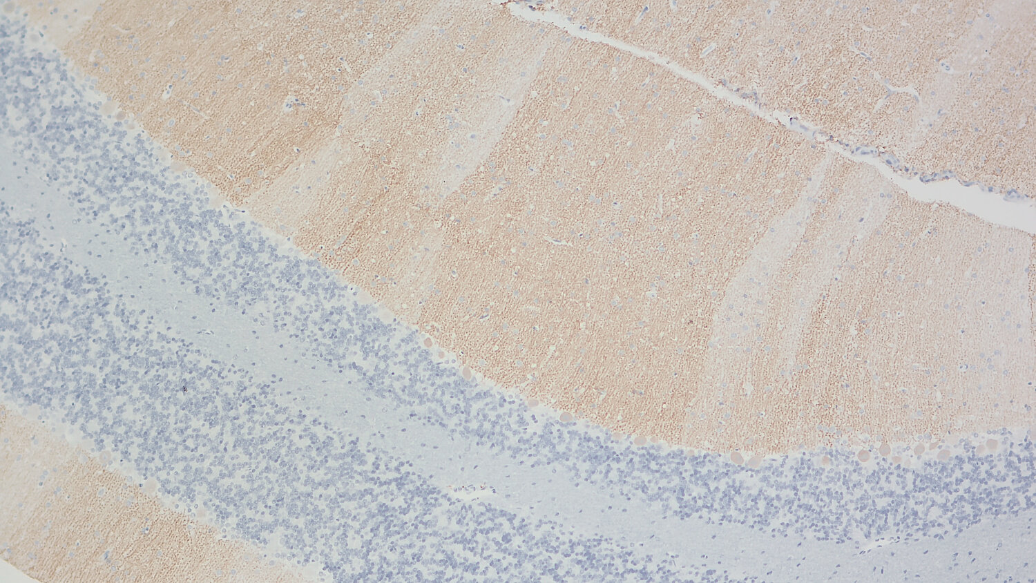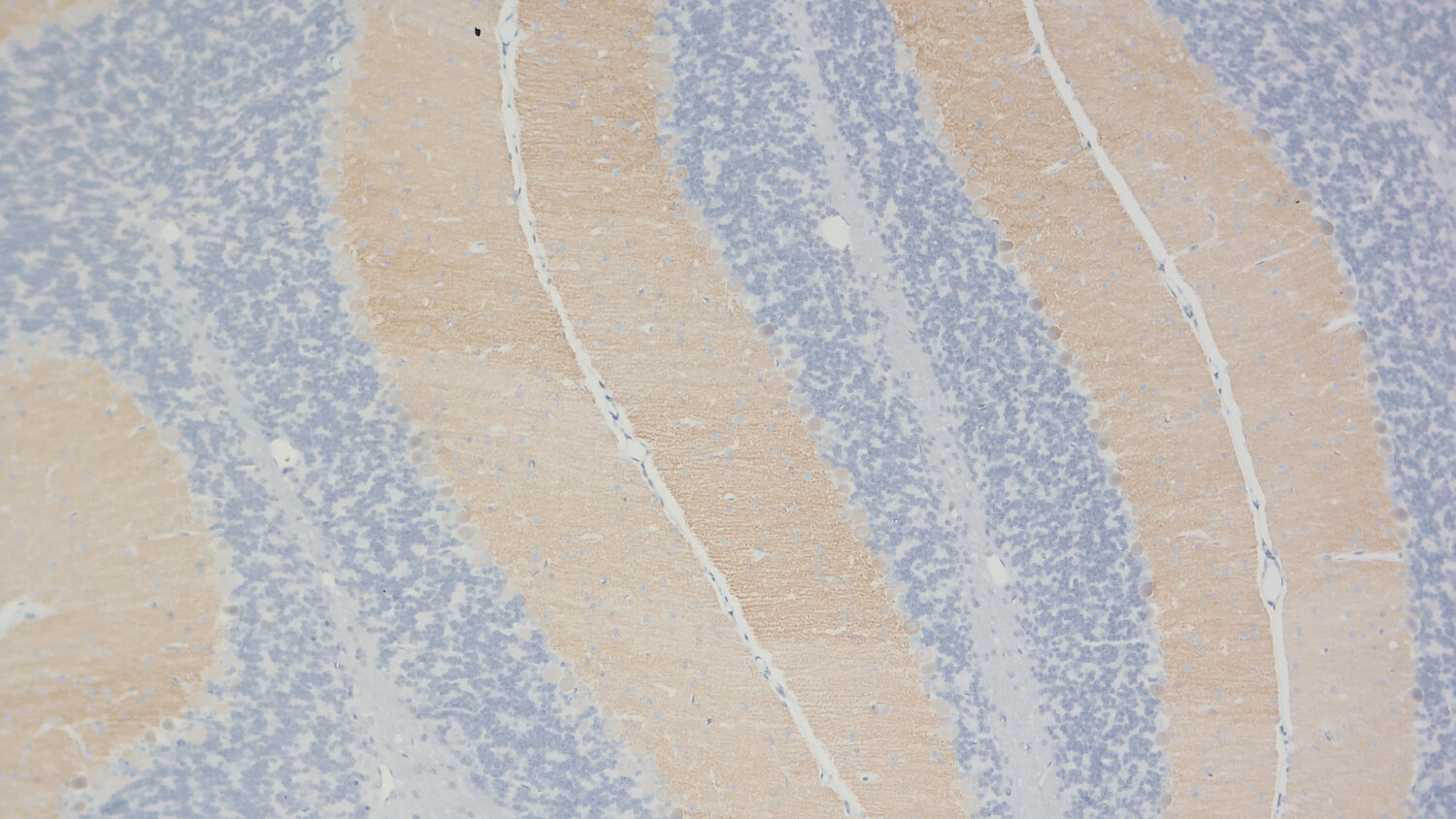 Five EAATs with differential expression patterns have been described so far: EAAT1, also referred to as GLAST and SLC1A3, has neuroprotective potential following ischemia and occurs in reactive astrocytes and activated microglia. EAAT2 (GLT-1, SLC1A2) is the most abundant isoform and is primarily expressed in astrocytes. Both variants show high levels in brain and retina. EAAT3 / SLC1A1, EAAT4 / SLC1A6 and EAAT5 / SLC1A7 are expressed in neurons (2). EAAT4 shows weak expression in the forebrain and high levels in the cerebellum, where it mainly locates to Purkinje cells (3). EAAT5 primarily occurs in the retina, where it locates very close to glutamate release sites. In K.O. mice flicker resolution is considerably compromised (4). Recent findings suggest that EAAT5 is an abundant isoform, expressed also in non-neuronal peripheral tissues (5).