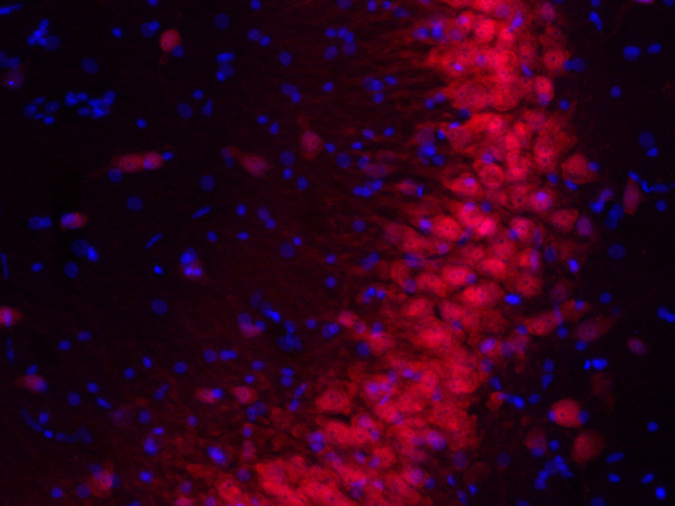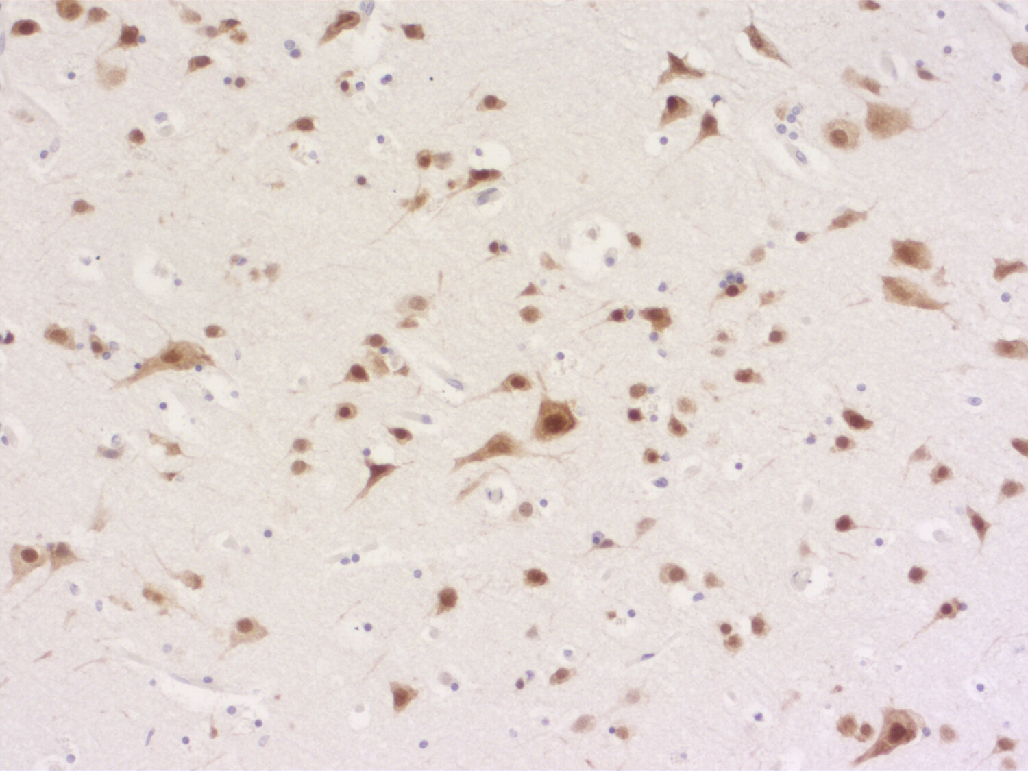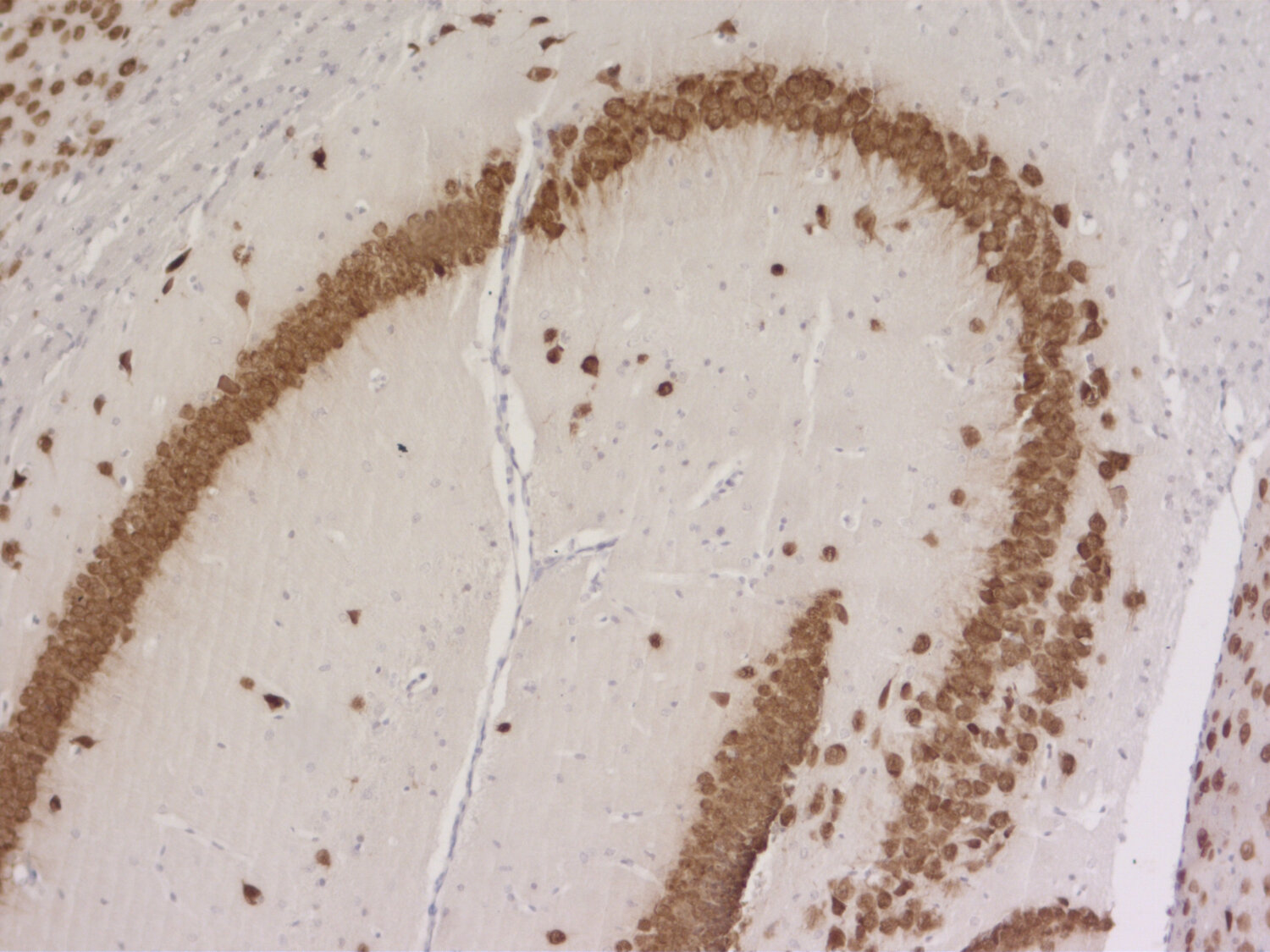 NeuN is only expressed in the nuclei of differentiated neurons. In some neurons - Purkinje cells, sympathetic ganglion cells, INL retinal cells, Cajal-Retzius cells, inferior olivary, and dentate nucleus neurons - NeuN is not detectable.