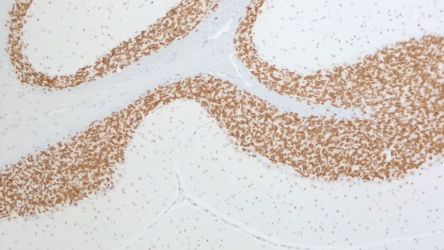 NeuN is only expressed in the nuclei of differentiated neurons. In some neurons - Purkinje cells, sympathetic ganglion cells, INL retinal cells, Cajal-Retzius cells, inferior olivary, and dentate nucleus neurons - NeuN is not detectable.