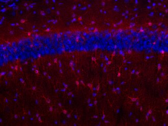 S100B is a frequently used marker protein for mature astrocytes whereas GFAP is also expressed in germinal zone cells that maintained their immature developmental stage.