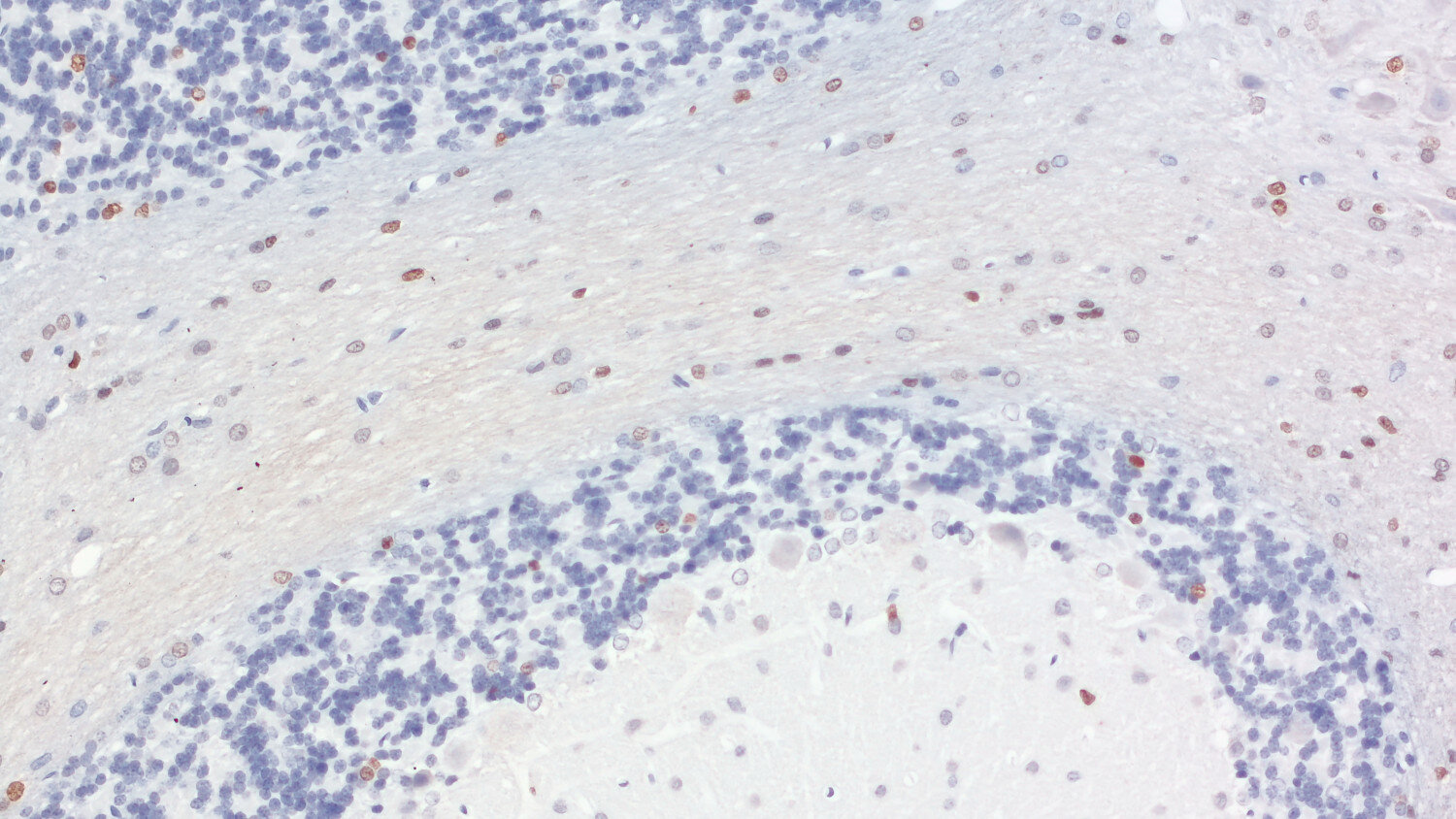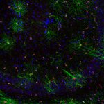 Olig2 (also known as BHLHB1 and PRKCBP2) is a basic helix–loop–helix transcription factor characteristic of the oligodendroglial lineage and plays key roles in the specification and maturation of oligodendrocytes. Oligodendrocytes are glial cells that produce and maintain central nervous system myelin; Morphologically, oligodendrocyte nuclei are typically smaller and more oval than nuclei of other CNS cell types. (1-3).