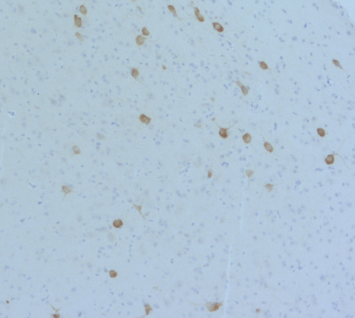 IHC: Compared to mouse tissue, this antibody shows a poorer signal to noise ratio on rat tissue. |