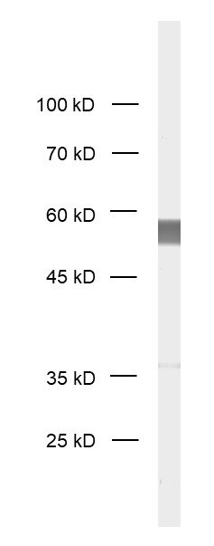 This antibody is a chimeric antibody based on the well known monoclonal mouse antibody clone 1D5. The constant regions of the heavy and light chains have been replaced by rabbit specific sequences. Therefore, the antibody can be used with standard anti-rabbit secondary reagents. The antibody has been expressed in mammalian cells. |