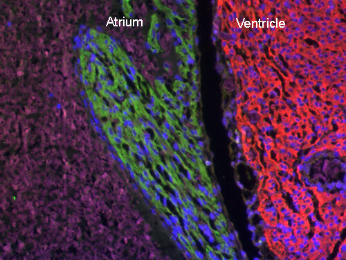 This monoclonal antibody is a useful tool to distinguish between ventricle and atrium specific cardiomyocytes.