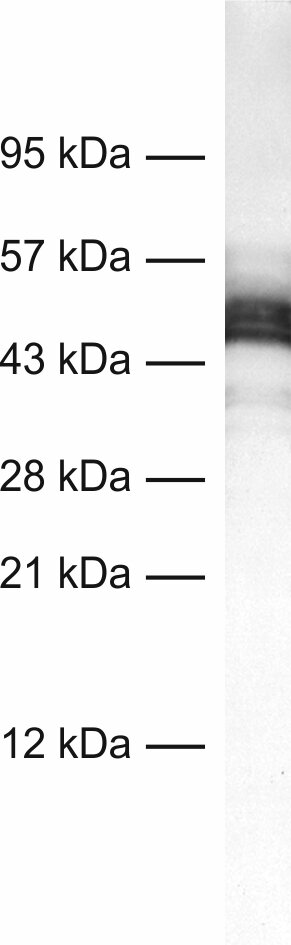 50 µg purified recombinant IgG, lyophilized. Albumin and azide were added for stabilization. For reconstitution add 50 µl H2O to get a 1mg/ml solution in PBS. Then aliquot and store at -20°C to -80°C until use. Antibodies should be stored at +4°C when still lyophilized. Do not freeze! |