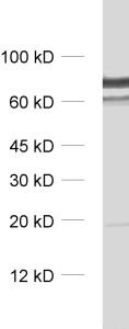 50 µg specific antibody, lyophilized. Affinity purified with the immunogen. Albumin was added for stabilization. For reconstitution add 50 µl H2O to get a 1mg/ml solution in PBS. Then aliquot and store at -20°C to -80°C until use. Antibodies should be stored at +4°C when still lyophilized. Do not freeze! |