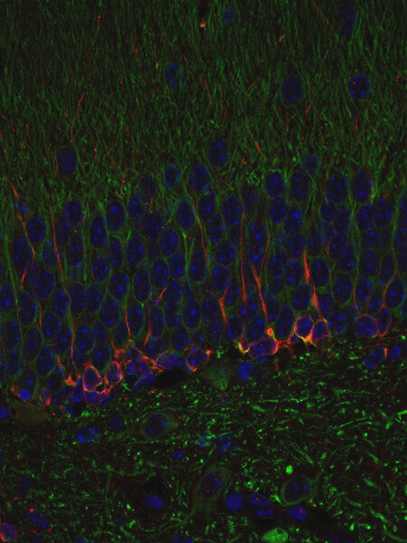 Doublecortin is highly expressed in neuronal cells of fetal brain but absent from other tissues. In the adult dentate gyrus it is only expressed in cells contributing to adult neurogenesis.