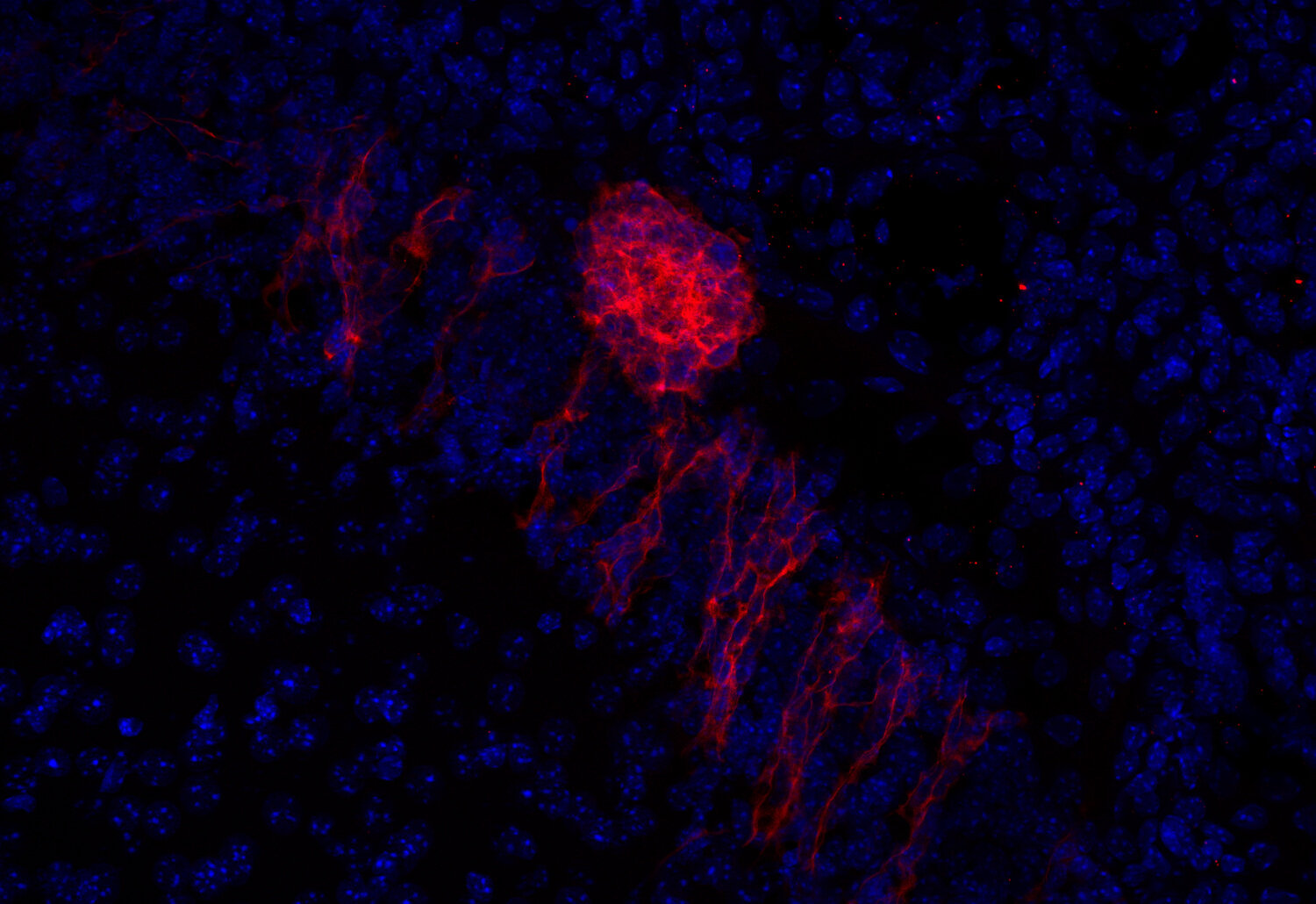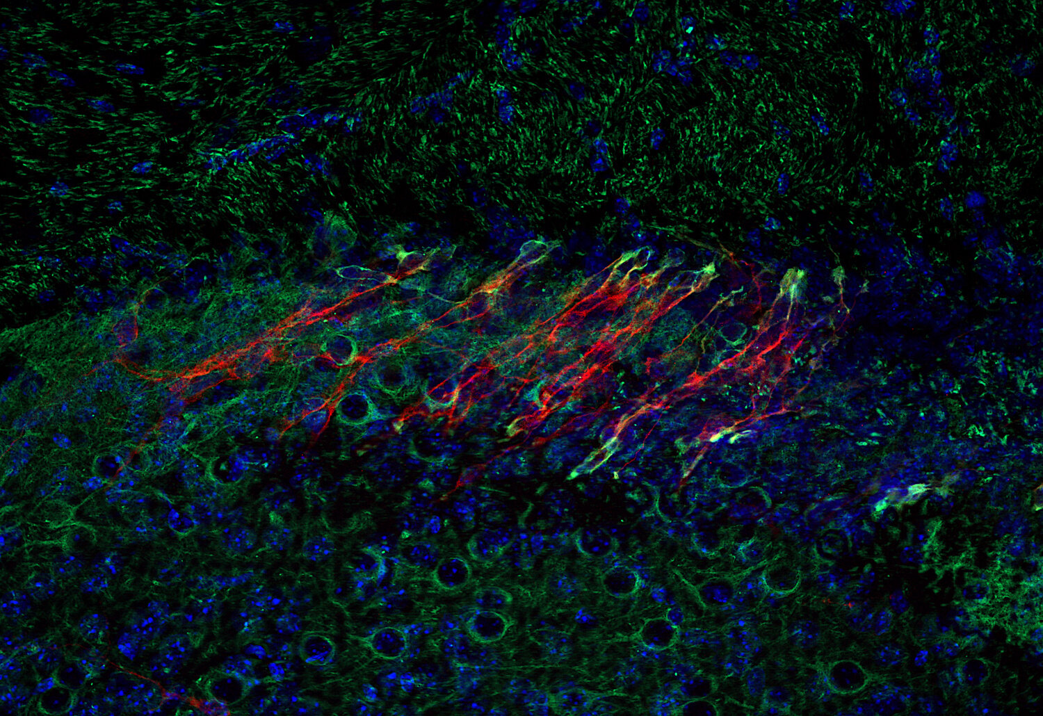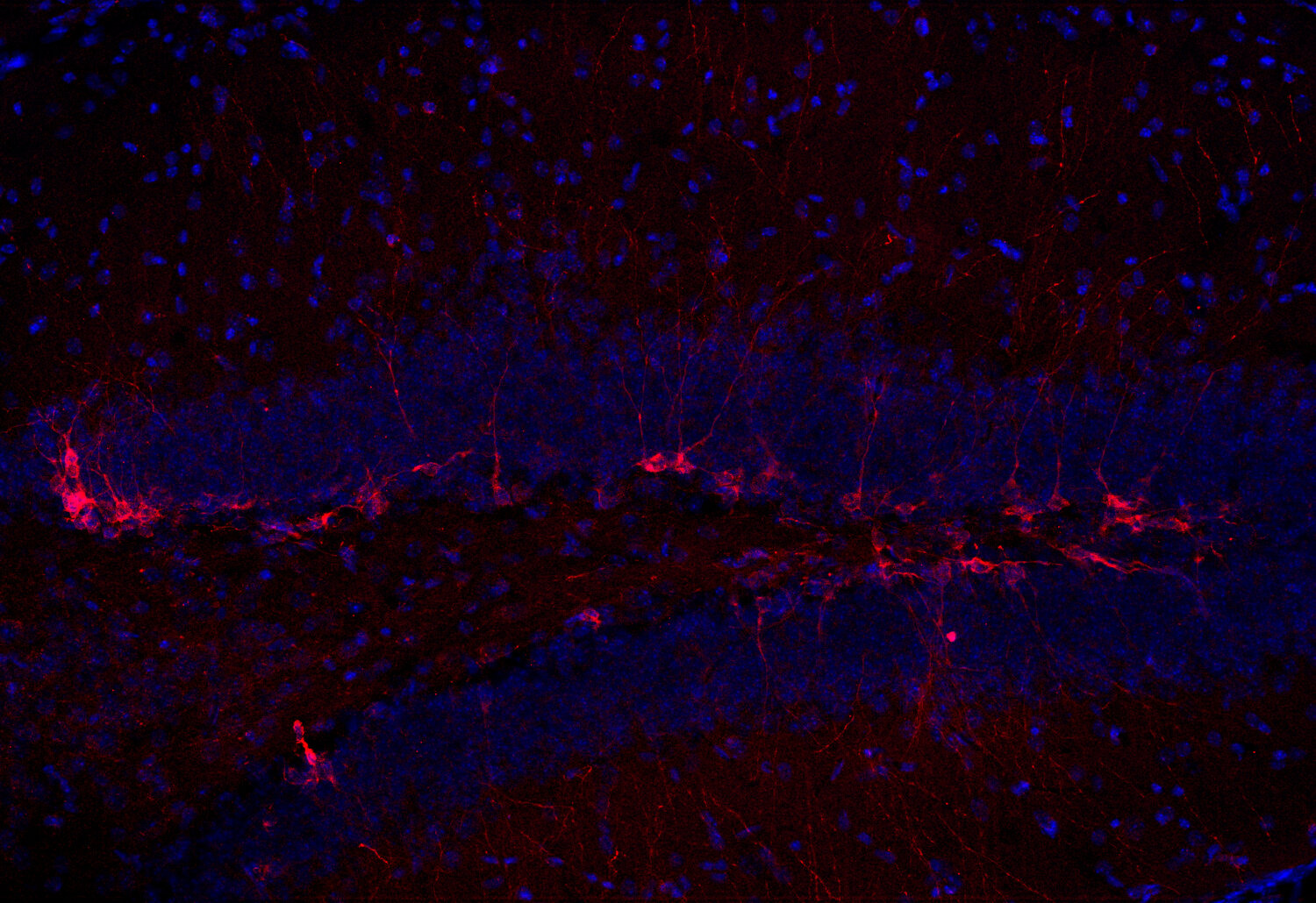 Doublecortin is highly expressed in neuronal cells of fetal brain but absent from other tissues. In the adult dentate gyrus it is only expressed in cells contributing to adult neurogenesis.