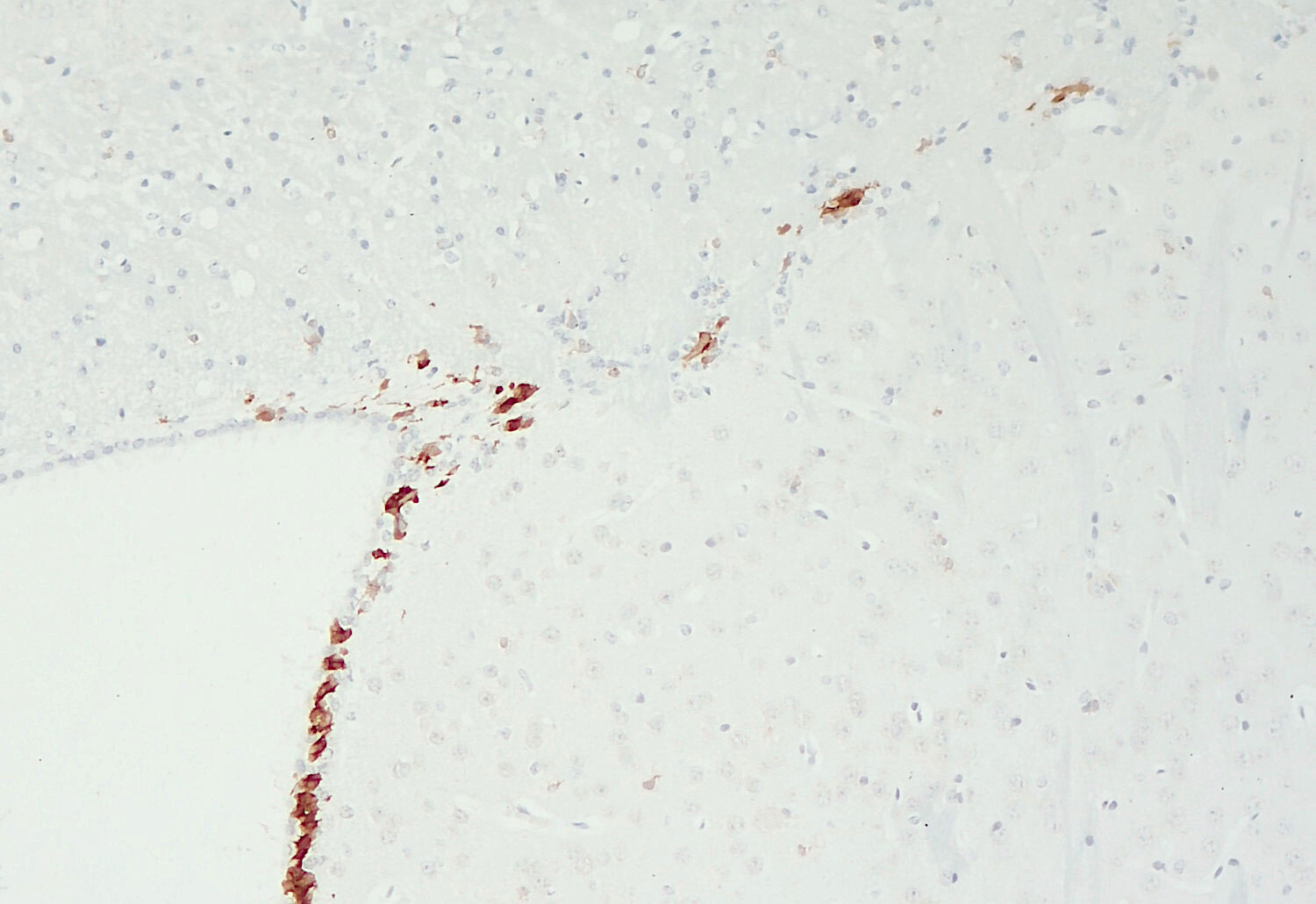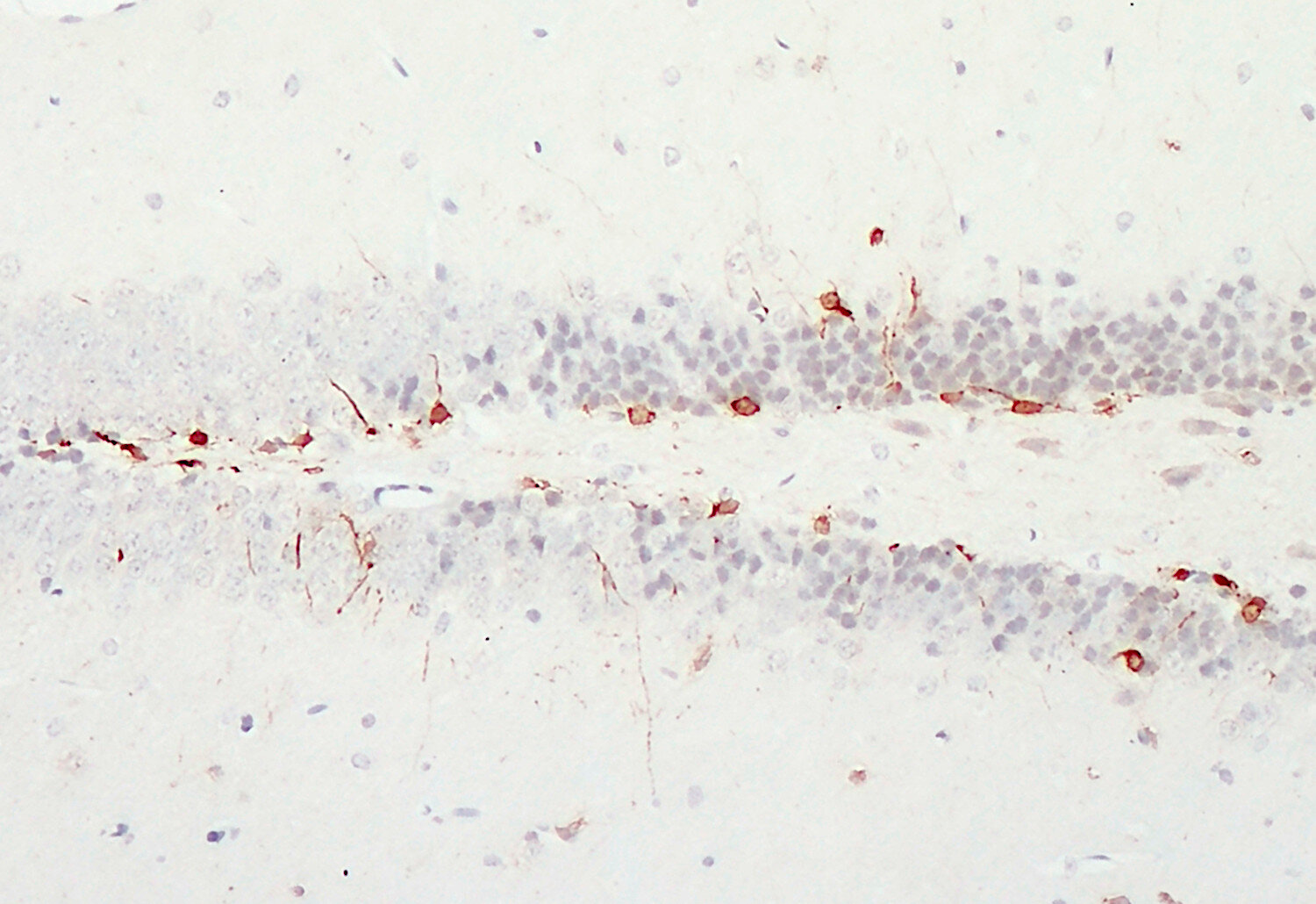 Doublecortin is highly expressed in neuronal cells of fetal brain but absent from other tissues. In the adult dentate gyrus it is only expressed in cells contributing to adult neurogenesis.