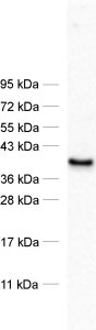 50 µg specific antibody, lyophilized. Affinity purified with the immunogen. Albumin was added for stabilization. For reconstitution add 50 µl H2O to get a 1mg/ml solution in PBS. Then aliquot and store at -20°C to -80°C until use. Antibodies should be stored at +4°C when still lyophilized. Do not freeze!