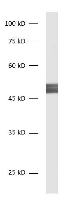 50 µg purified recombinant IgG, lyophilized. Albumin and azide were added for stabilization. For reconstitution add 50 µl H2O to get a 1mg/ml solution in PBS. Then aliquot and store at -20°C to -80°C until use. Antibodies should be stored at +4°C when still lyophilized. Do not freeze! |