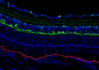 Monocarboxylate Transporter3 (MCT3), encoded by Slc16a8, is a proton-coupled lactate transporter localized to the basolateral membrane of the retinal pigment epithelium (RPE), where it facilitates lactate and proton efflux to the choroid. Its expression is highly tissue-specific, mainly restricted to the RPE and choroid plexus epithelium. (1,2) MCT3-deficient mice (Mct3⁻/⁻) exhibit reduced scotopic electroretinogram (ERG) amplitudes despite intact retinal morphology and healthy photoreceptors, suggesting impaired visual function arises from subretinal acidosis due to lactate accumulation. (3) Loss of basolateral CD147, essential for MCT3 localization, further disrupts this transport system. (3) MCT3, together with apically localized MCT1, enables directional lactate clearance from the retina, underscoring its role in maintaining subretinal pH and metabolic balance. (2) These insights position MCT3 as a key regulator of the retinal microenvironment.