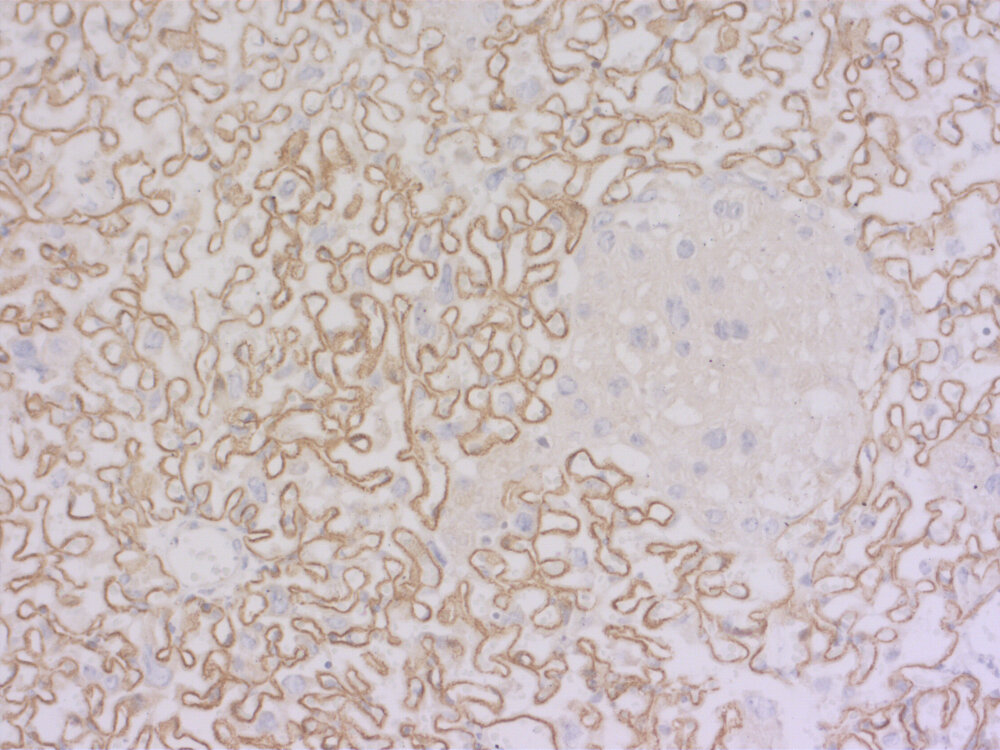 50 µg specific antibody, lyophilized. Affinity purified with the immunogen. Albumin and azide were added for stabilization. For reconstitution add 50 µl H2O to get a 1mg/ml solution in PBS. Then aliquot and store at -20°C to -80°C until use. Antibodies should be stored at +4°C when still lyophilized. Do not freeze! |