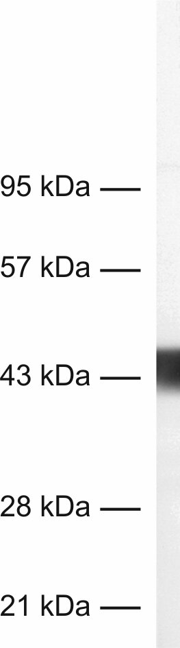 100 µg purified IgG, lyophilized. Albumin and azide were added for stabilization. For reconstitution add 100 µl H2O to get a 1mg/ml solution in PBS. Then aliquot and store at -20°C to -80°C until use. Antibodies should be stored at +4°C when still lyophilized. Do not freeze! |