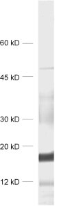 200 µl antiserum, lyophilized. For reconstitution add 200 µl H2O, then aliquot and store at -20°C until use. Antibodies should be stored at +4°C when still lyophilized. Do not freeze!
