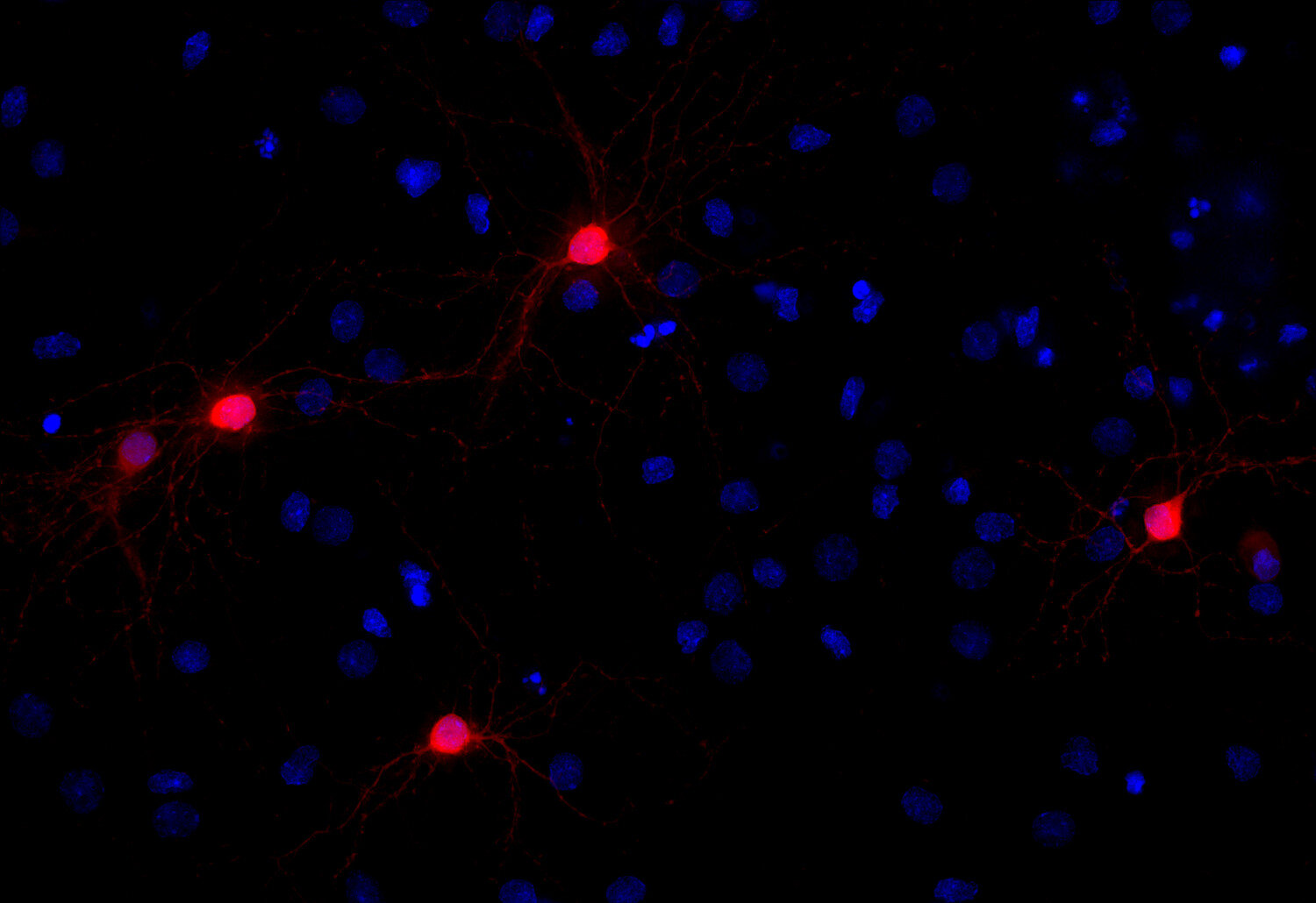 The dopamine and cAMP regulated phosphoprotein 32 kDa (DARPP 32), also known as PPP1R1B, is phosphorylated in a dopamine dependent manner. Stimulation of the dopamine receptor DRD 1 increases cAMP levels resulting in DARPP 32 phosphorylation. It is a commonly used marker for striatal medium spiny neurons (MSNs).