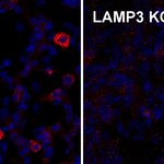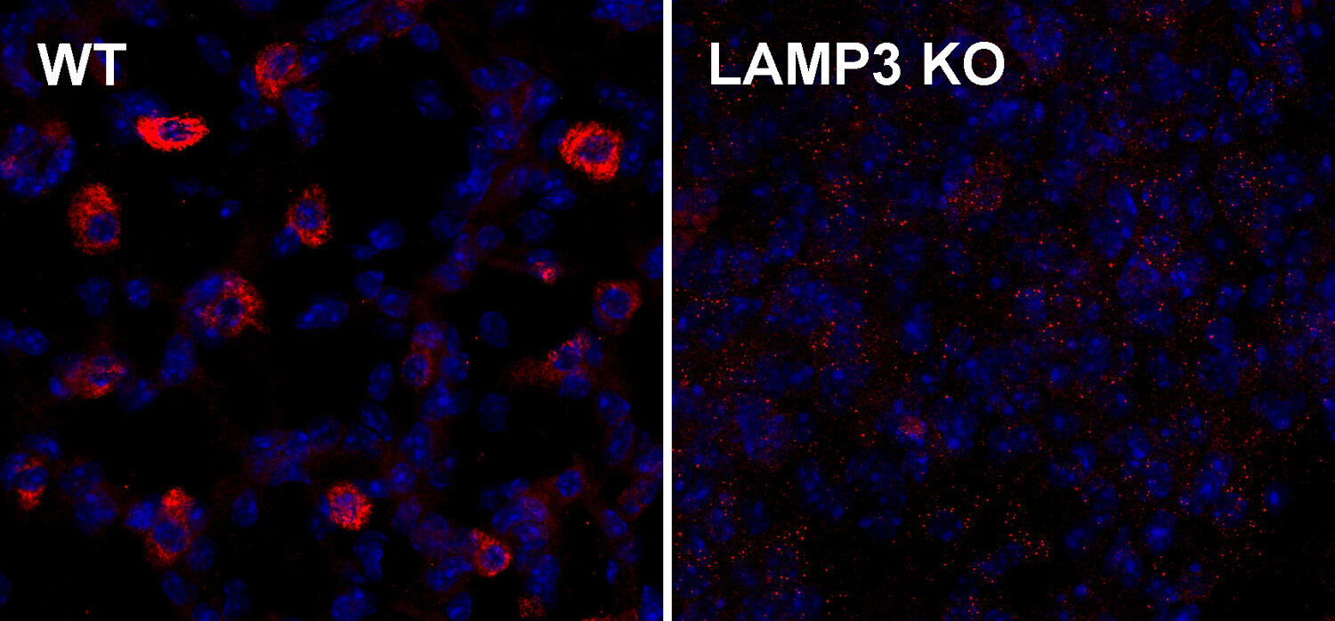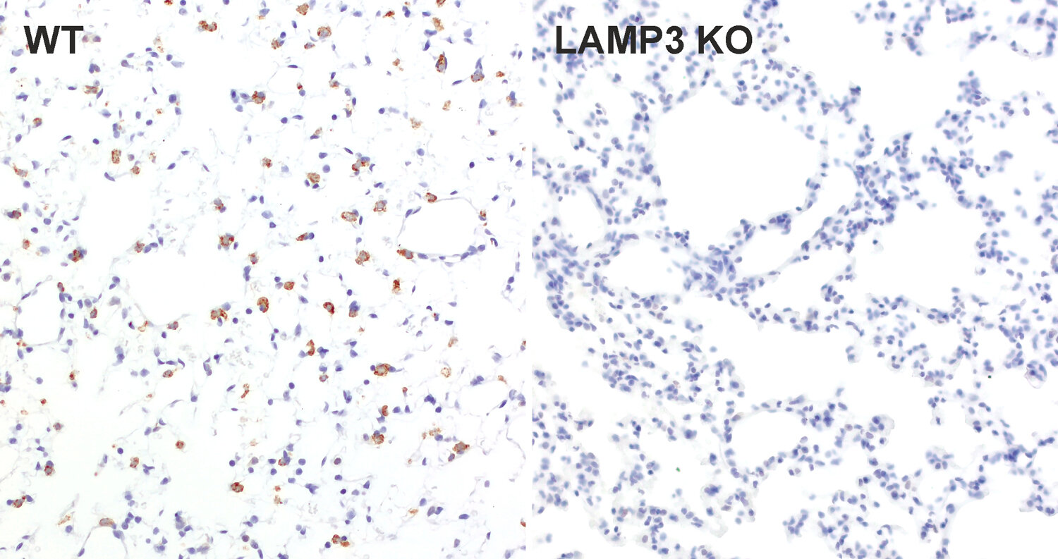 LAMP3 (lysosome-associated membrane glycoprotein 3), also referred to as DC-LAMP (dendritic cell LAMP) or CD 208, is a member of the LAMP protein family and a single-pass type I transmembrane protein that can be variably glycosylated. It is specifically expressed in lung type II pneumocytes and by activated human dendritic cells (1, 2).