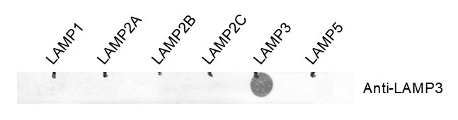 | Immunogen | Synthetic peptide corresponding to C-terminal residues of mouse LAMP3 (UniProt Id: Q7TST5) |