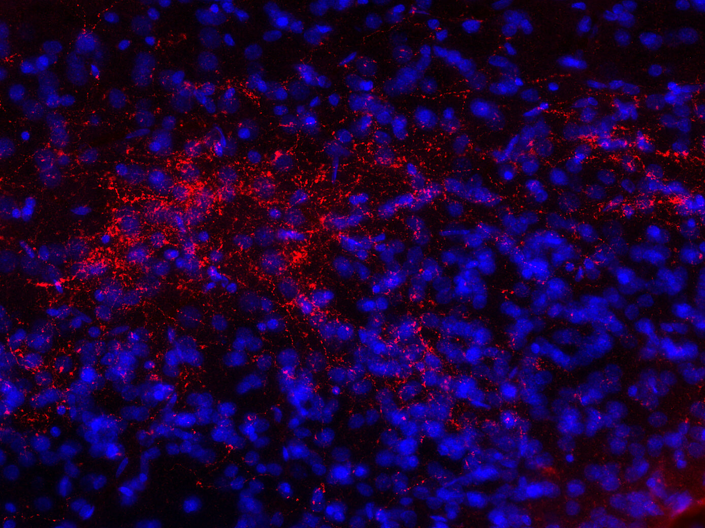 Neurotensin is widely distributed throughout the central nervous system. The highest expression levels are seen in the hypothalamus, amygdala and nucleus accumbens. In the periphery, it is produced by endocrine cells (N cells) of the intestine, where it leads to secretion and smooth muscle contraction.