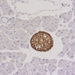The secretagogin protein was isolated from pancreatic islets of Langerhans and insulinomas, and shows abundant pancreatic expression and reduced expression in thyroid, adrenal medulla, stomach, small intestine, and colon.